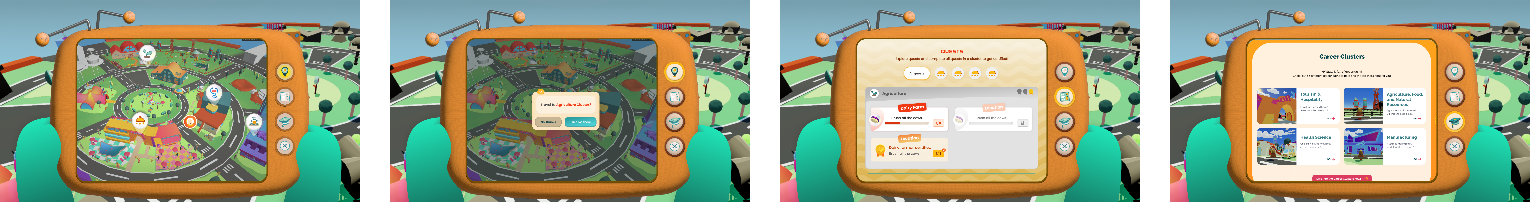 My role focused on crafting the visual interface and interaction design, ensuring the platform communicated its purpose clearly while remaining accessible and intuitive for the young target users. I have also worked on branding, 2D art, title screen and transition animations, and VR menu design.